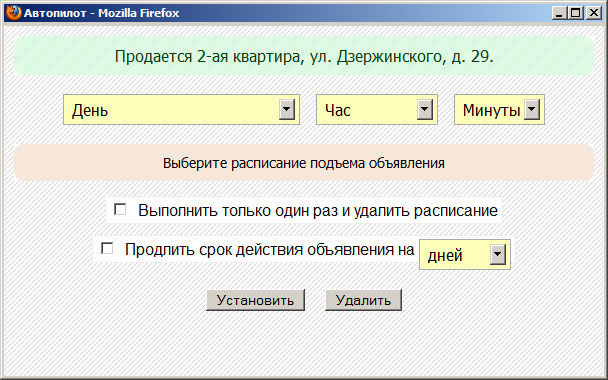 3. Бесплатный сервис "Автопилот". Универсальный электронный продавец позволит вам настроить подъем и публикацию объявлений по расписанию, без вашего дальнейшего присутствия у компьютера