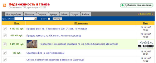 Все объявления на вашей витрине автоматически транслируются в общую базу сайта bazarpnz.ru, где в общем списке особо подсвечиваются и выделяются вашим логотипом